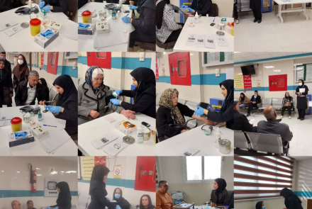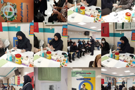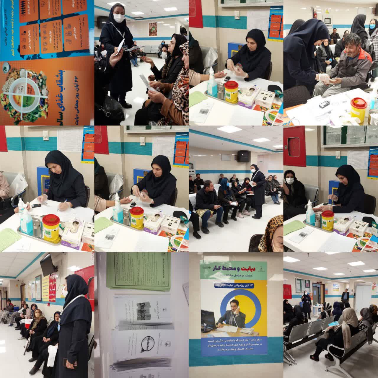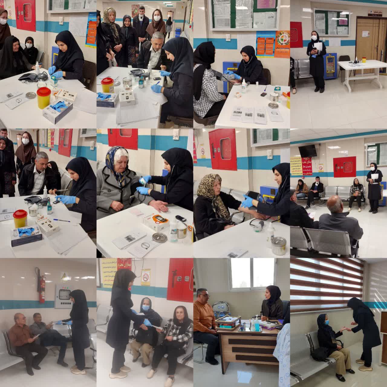 1- برپایی ایستگاه سلامت دیابت با شعار " دیابت در مراحل مختلف زندگی " و نصب پوسترعلایم هشدار دهنده دیابت و پوستر عوارض دیابت چیست و کنترل و اندازه گیری قند خون و فشار خون بیماران و مراجعین در درمانگاه تخصصی داخلی ، عفونی و زنان و قلب